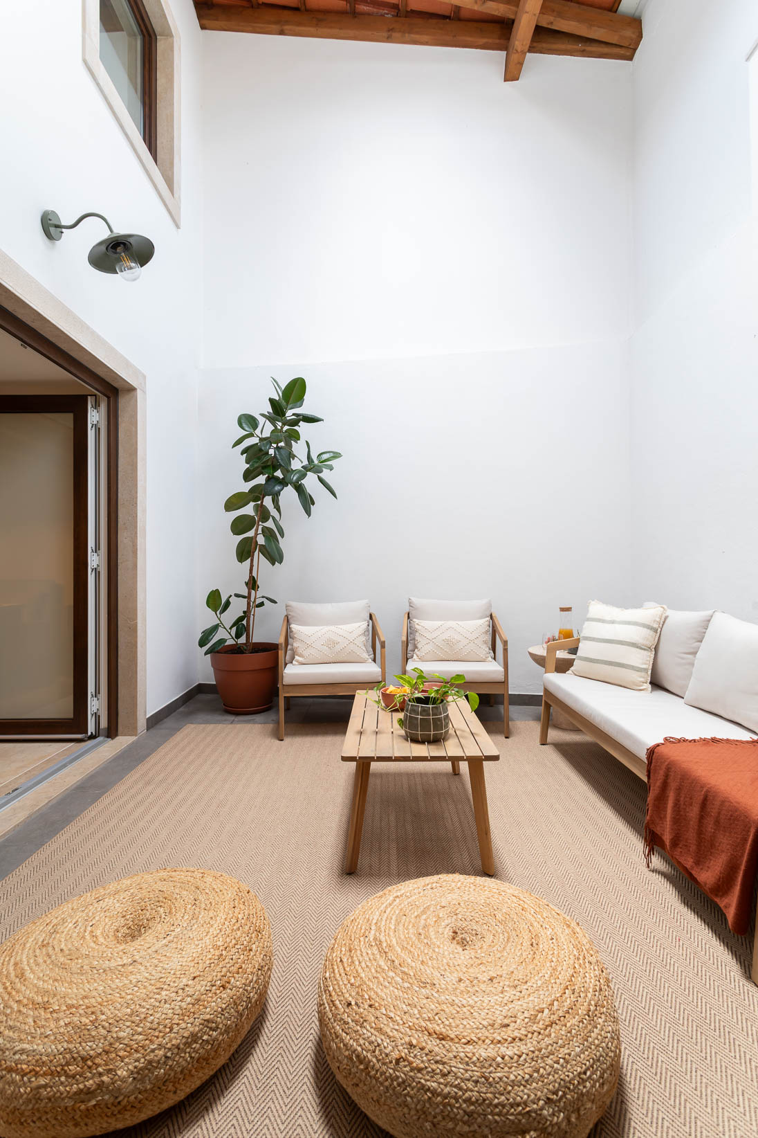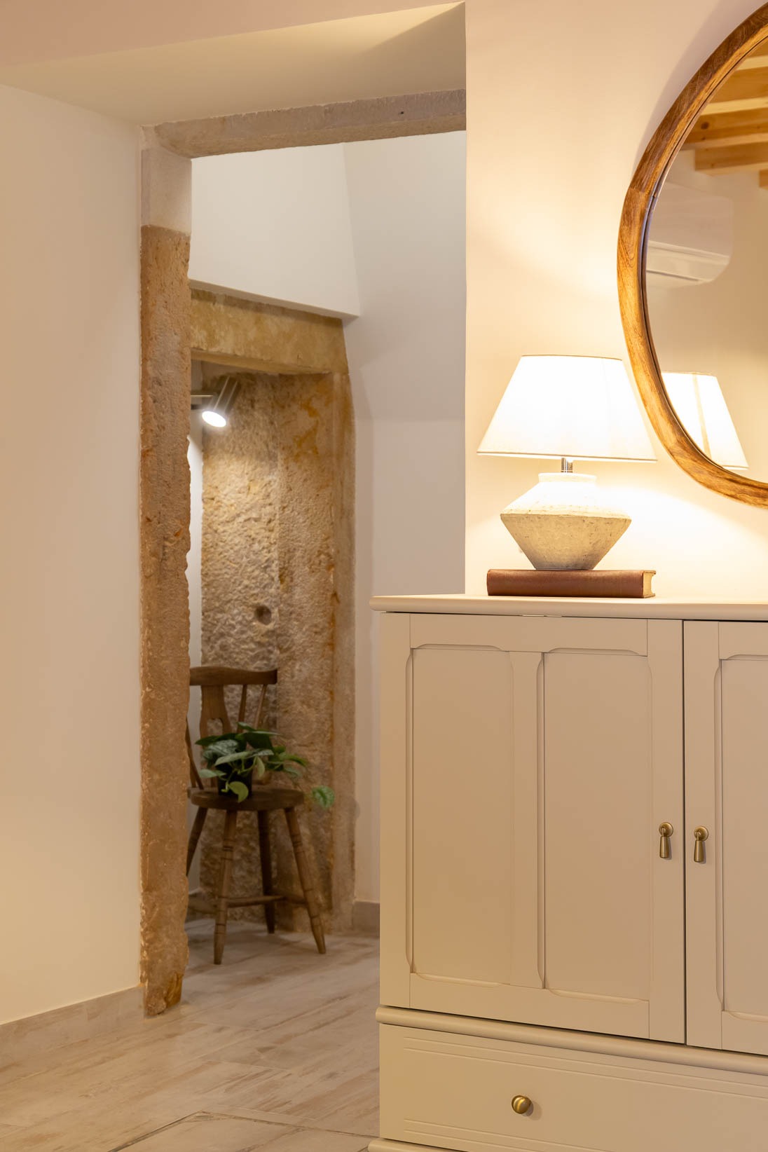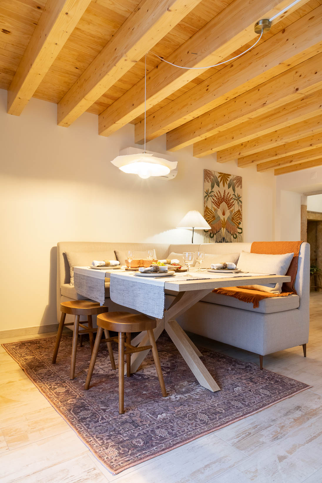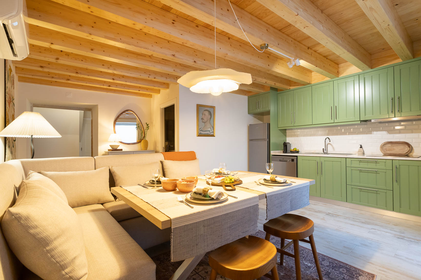 Este apartamento no coração histórico de Tomar ganhou uma nova vida, transformando-se num espaço acolhedor e cheio de personalidade. Apesar de ter sido recentemente renovado, a área principal era aberta e sem definição. O desafio passou por criar zonas de estar e de jantar funcionais, que respeitassem a fluidez do espaço sem limitar o seu uso.