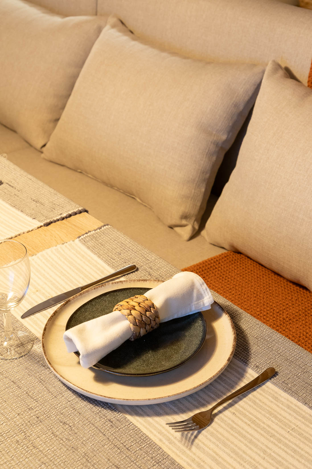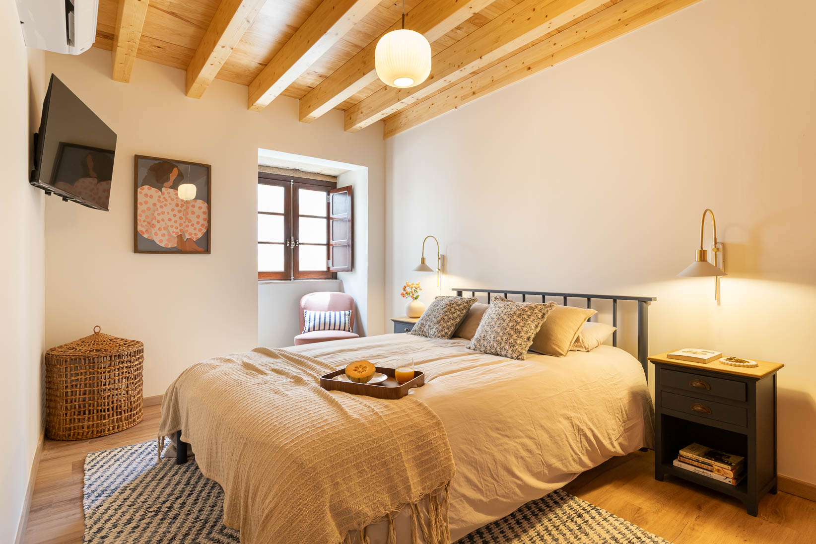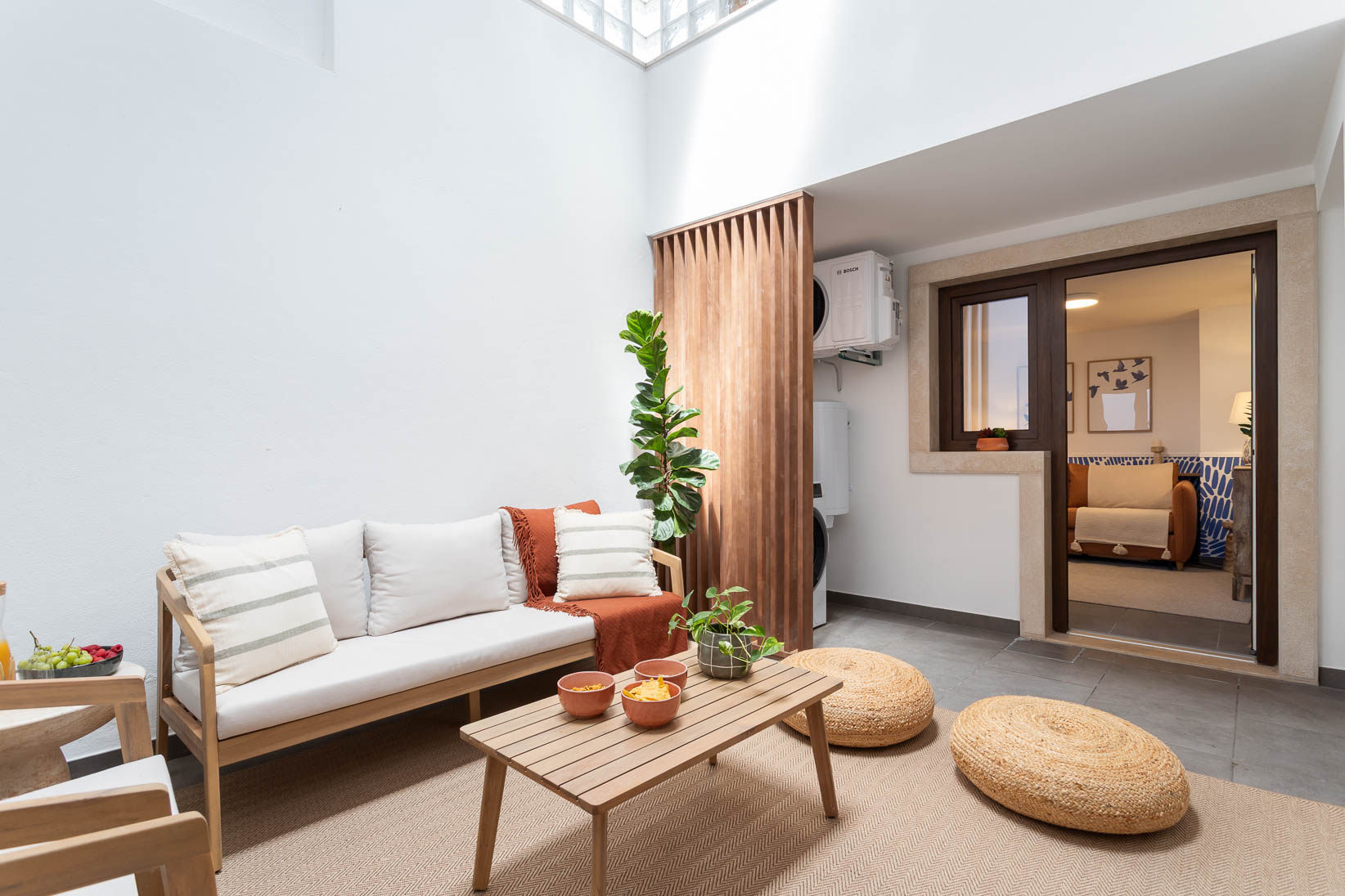 Este apartamento no coração histórico de Tomar ganhou uma nova vida, transformando-se num espaço acolhedor e cheio de personalidade. Apesar de ter sido recentemente renovado, a área principal era aberta e sem definição. O desafio passou por criar zonas de estar e de jantar funcionais, que respeitassem a fluidez do espaço sem limitar o seu uso.