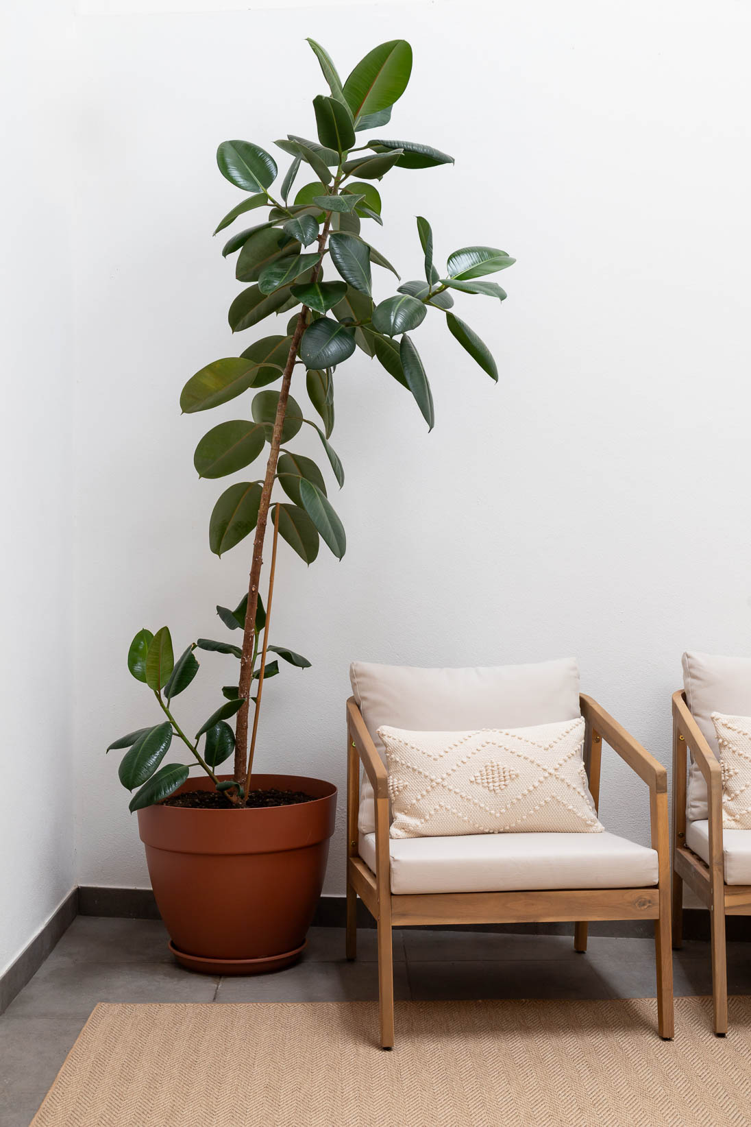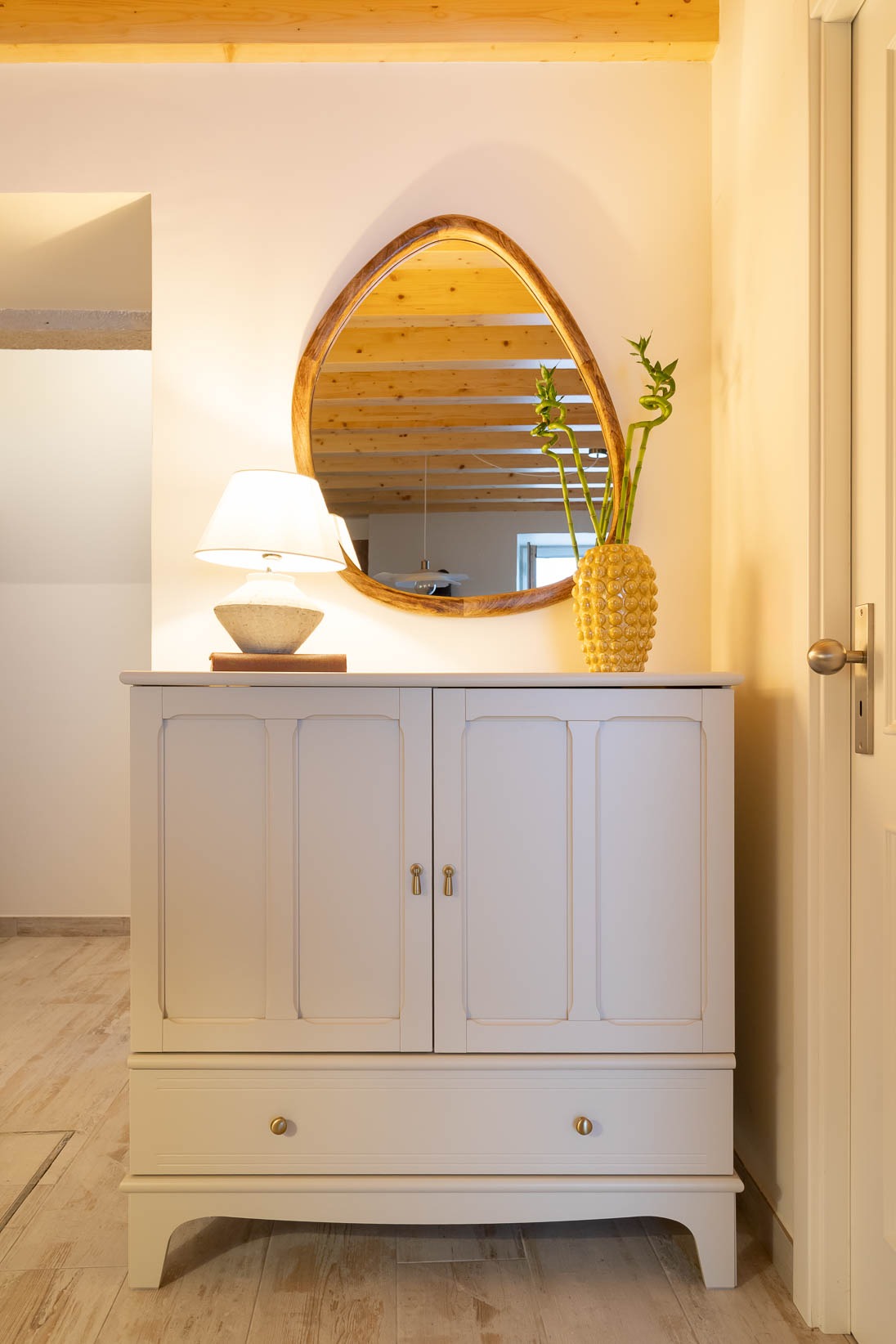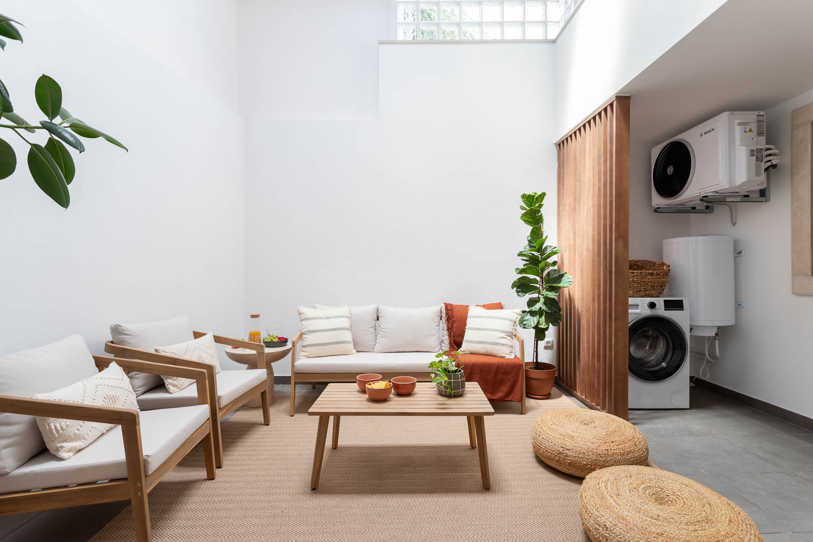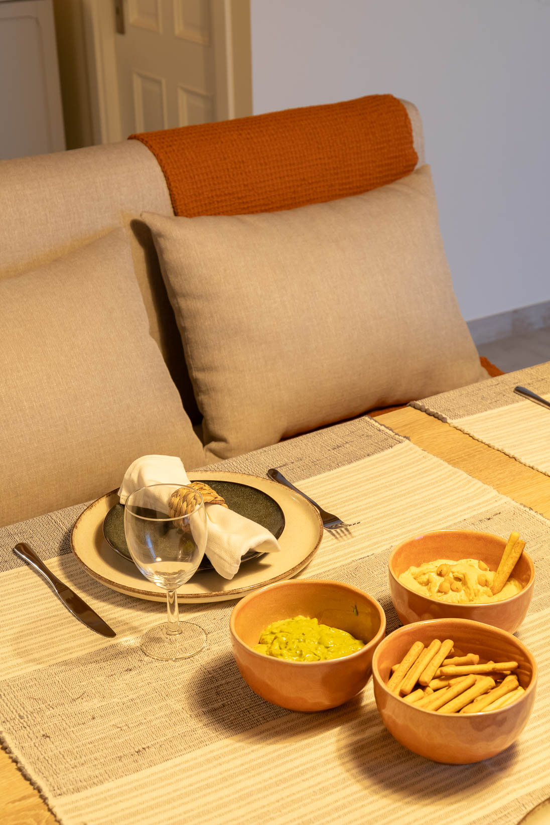 Este apartamento no coração histórico de Tomar ganhou uma nova vida, transformando-se num espaço acolhedor e cheio de personalidade. Apesar de ter sido recentemente renovado, a área principal era aberta e sem definição. O desafio passou por criar zonas de estar e de jantar funcionais, que respeitassem a fluidez do espaço sem limitar o seu uso.