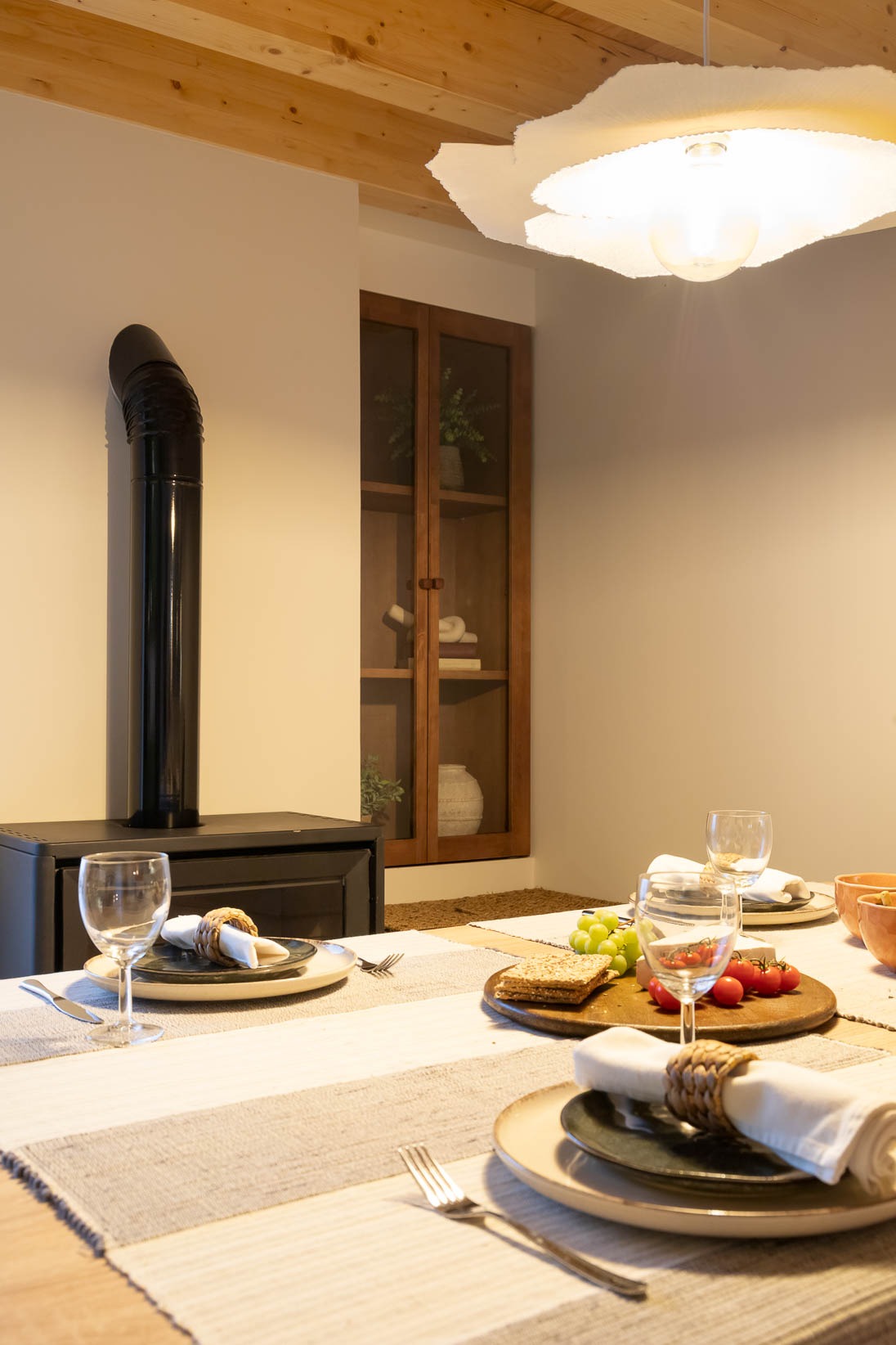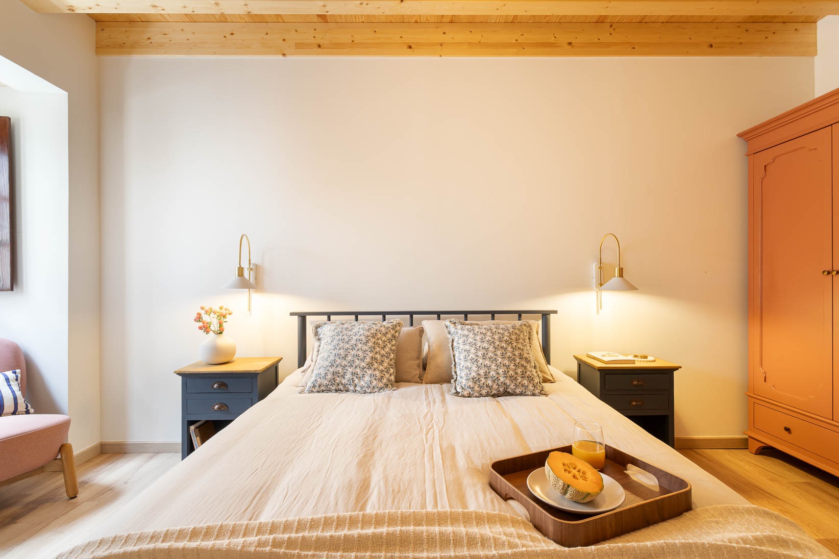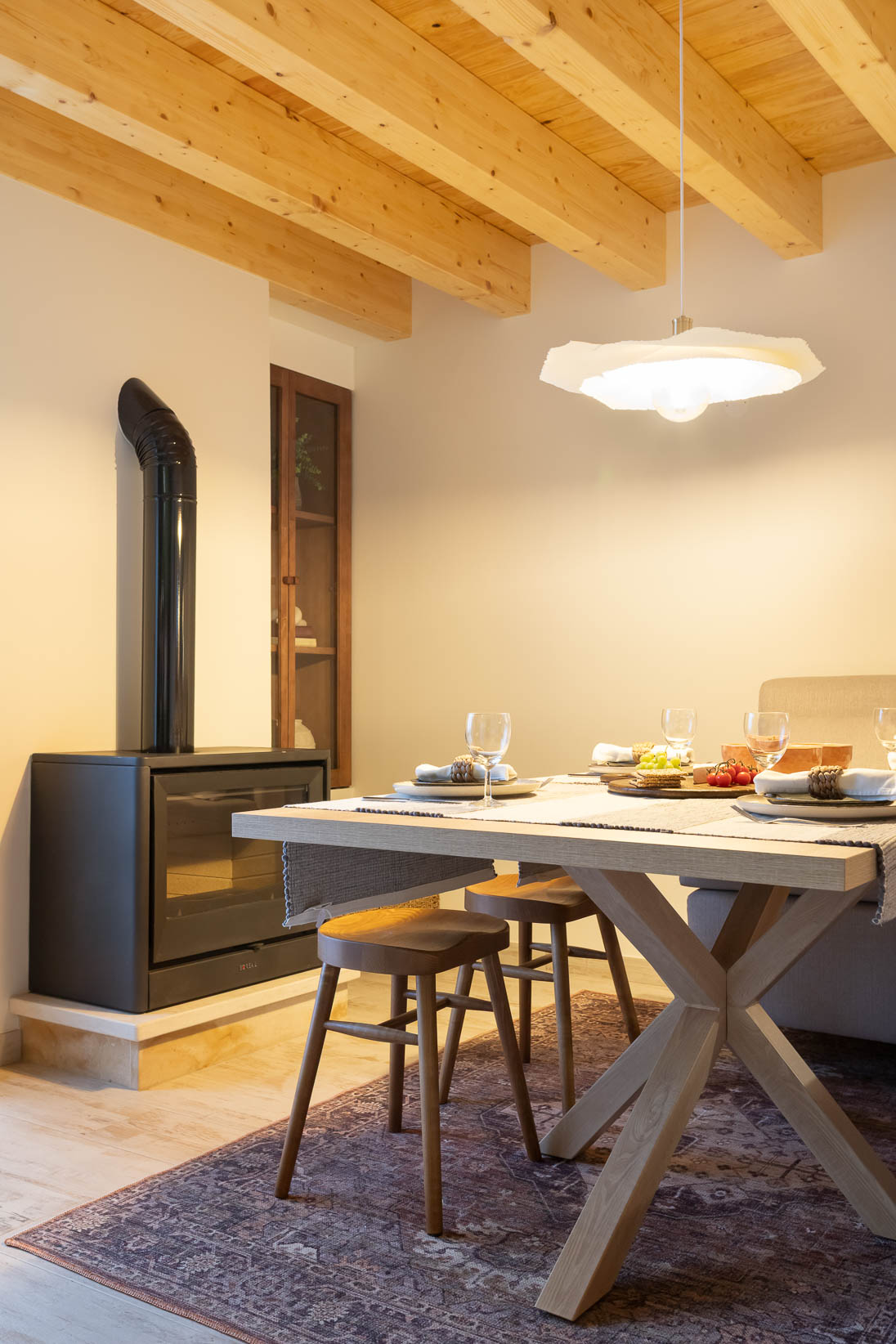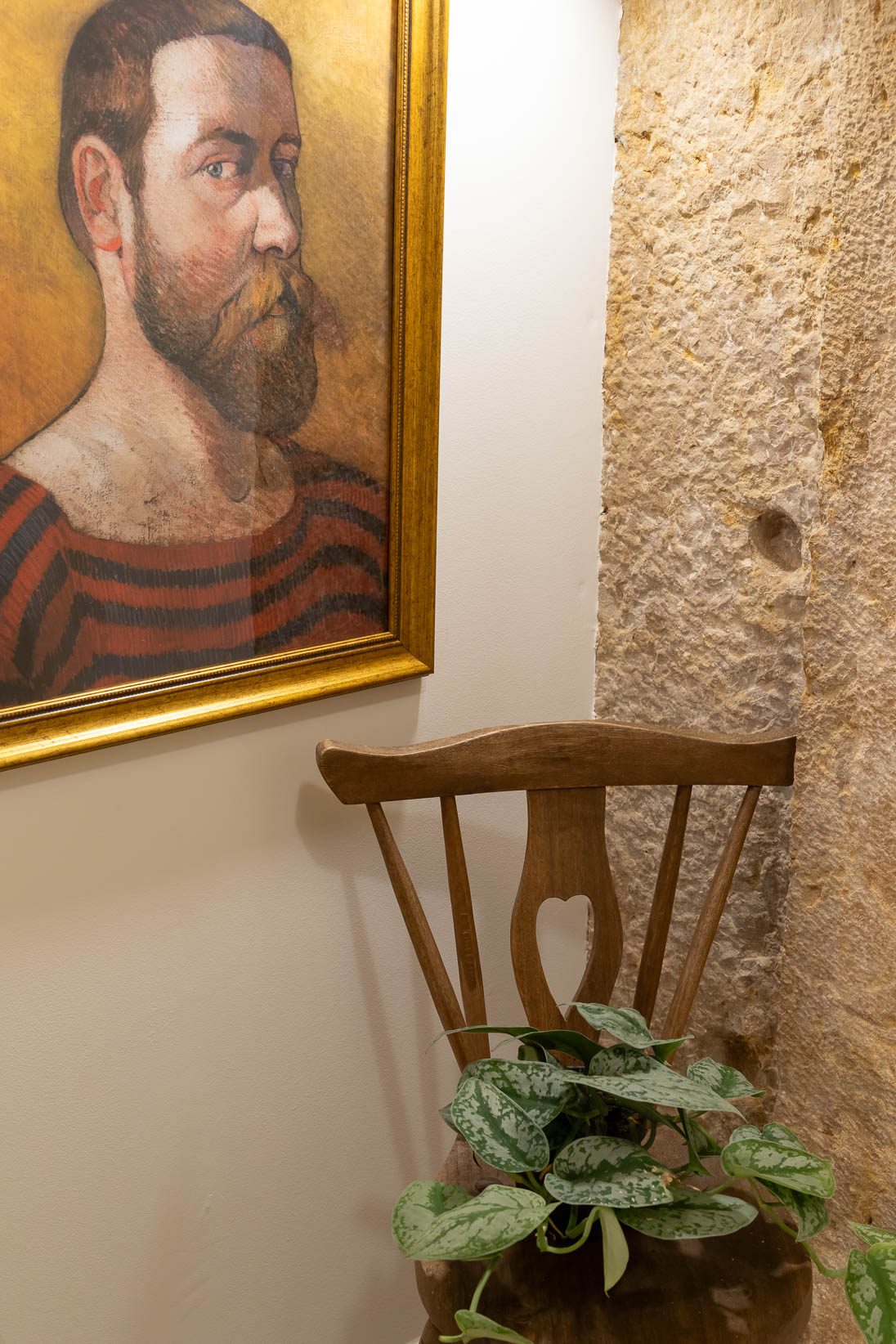 Foram preservados elementos estruturais e decorativos que marcam a história da casa, enquanto materiais, texturas e cores foram escolhidos para realçar a autenticidade e criar profundidade. O mobiliário e a decoração dialogam com a memória do espaço, resultando num ambiente harmonioso, confortável e pensado ao detalhe.