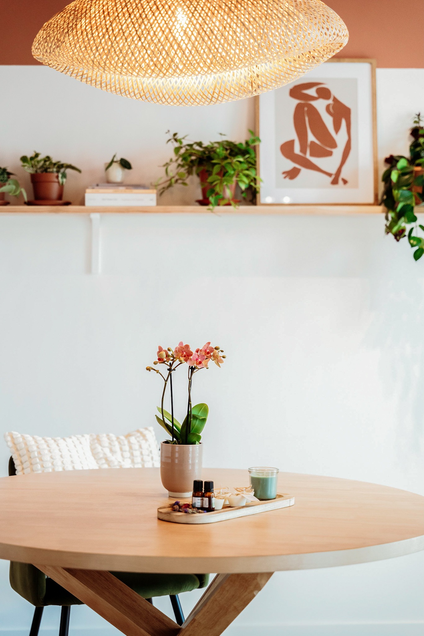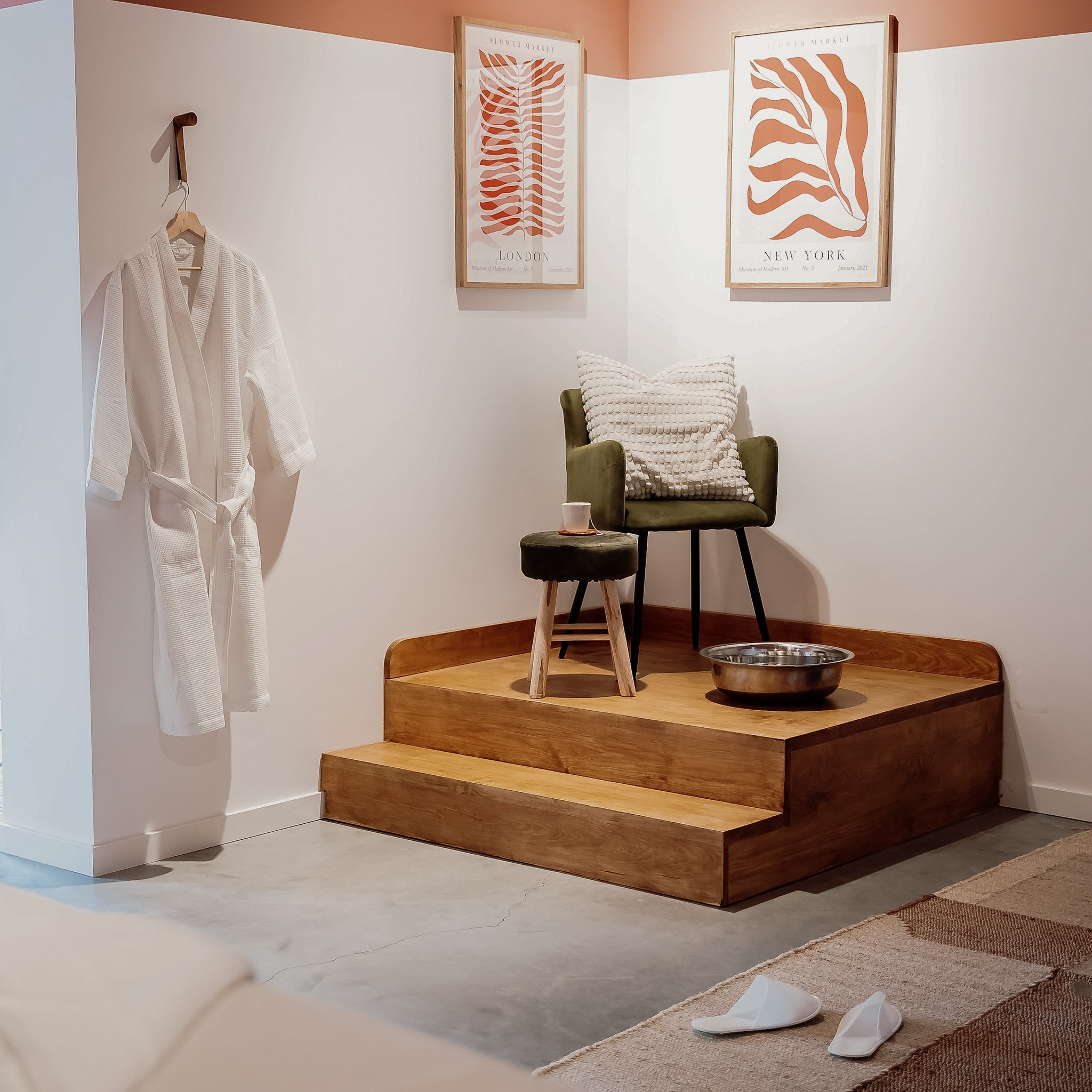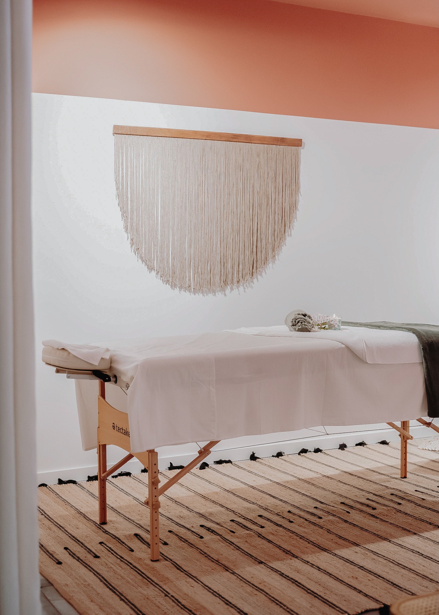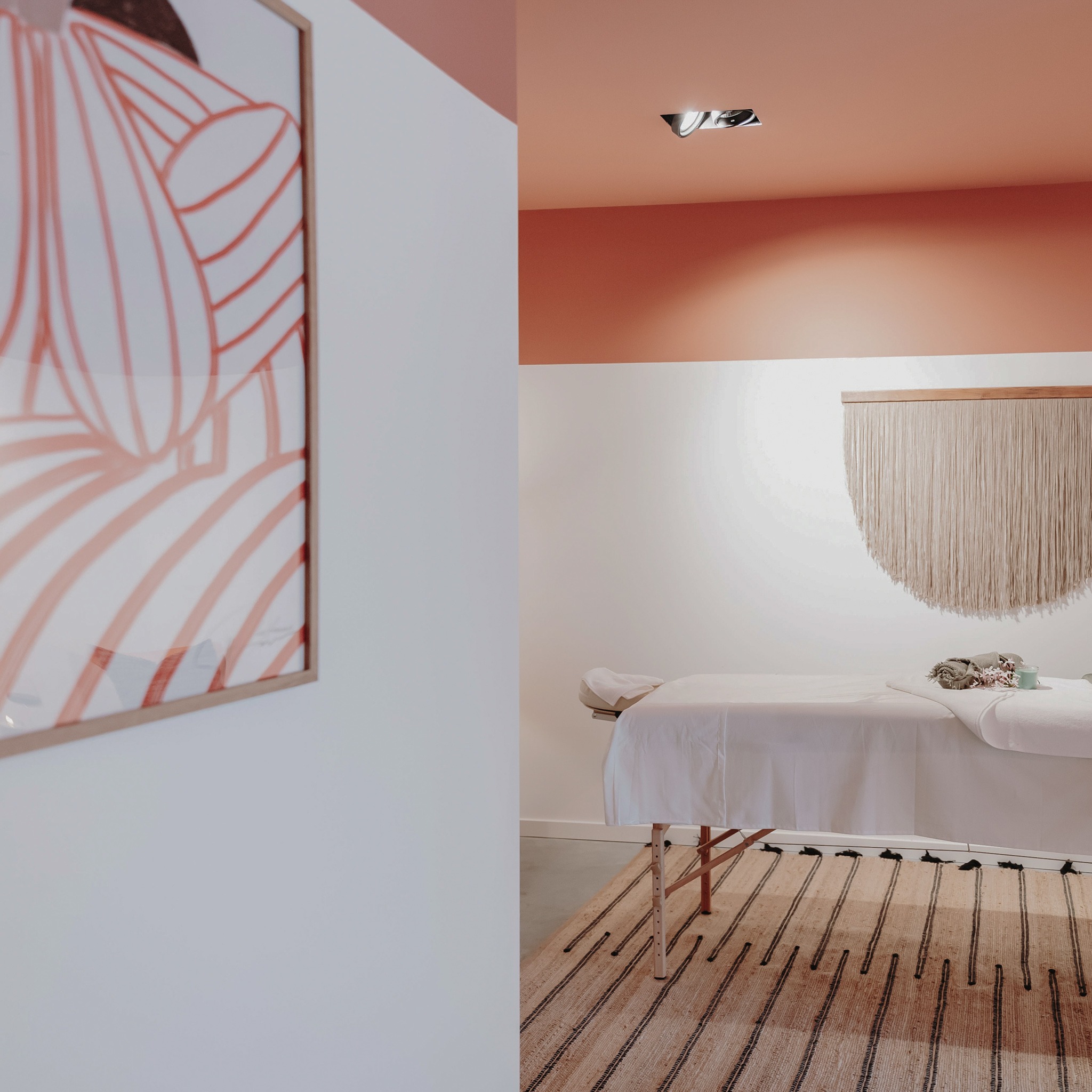 Projeto para um SPA, situado no coração de Tomar. O conceito? Um espaço orgânico, onde se sentisse a ligação à natureza, calmo, descontraído e confortável. Um espaço informal onde os cliente se sintam bem, e onde queiram voltar. A cliente adora flores, e esse foi o nosso ponto de partida. Às plantas juntaram-se outros elementos que nos remetem à natureza: a madeira, os têxteis, a paleta de cores, e as formas orgânicas.